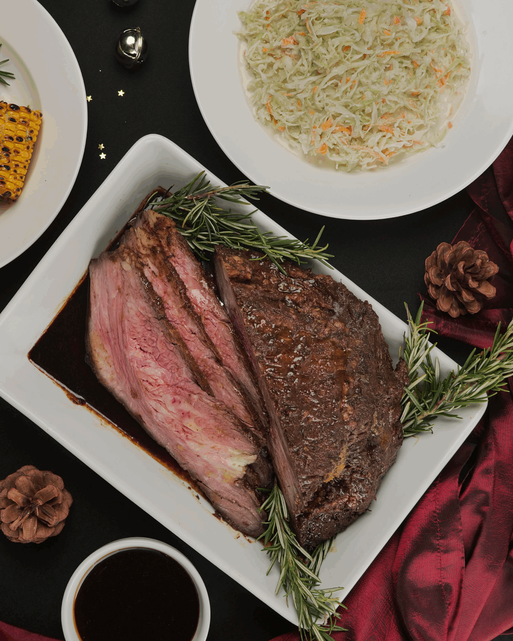 El brisket horneado llega a la mesa como un corte tierno y jugoso, con una capa exterior ligeramente caramelizada que anuncia horas de cocción lenta. La carne se acompaña de una salsa oscura y brillante, elaborada a partir de los jugos que el mismo brisket libera durante el horneado. Estos jugos se reducen cuidadosamente para concentrar sus sabores, logrando una mezcla equilibrada de notas ahumadas, toques salados y natural de dulzor.